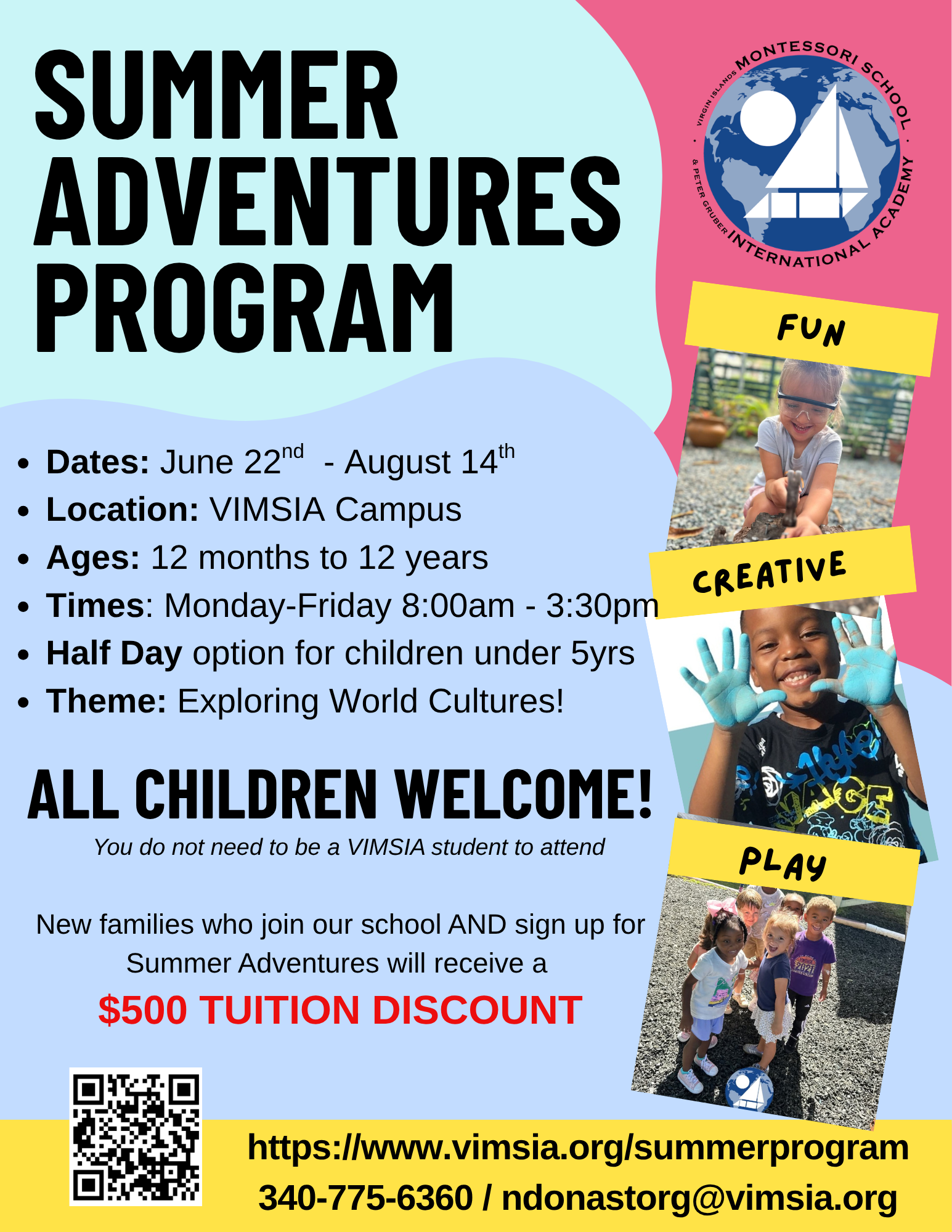 Led by VIMSIA’s own Nicole Donastorg and Maria Burkett, you won’t want to miss our Summer Adventures Program! Students will enjoy: